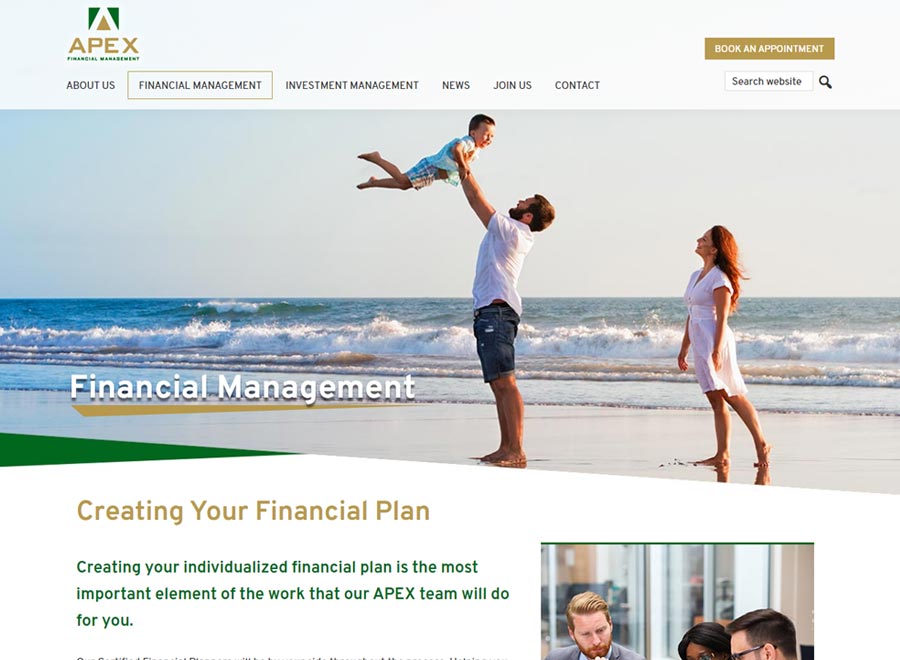 APEX is a fast growing company with two separate divisions: Financial Planning and Investment Management. APEX wanted a modern, clean and professional site to promote their services; provide financial and investment management information to new and existing clients; and to help support referrals and advisors transitioning their clients from other firms.